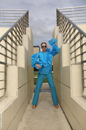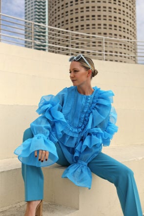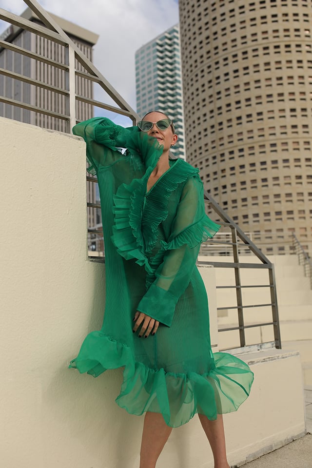The AW20 Collection from H&M Studio launches today! I’ve been a long time fan of the Studio Collections and this one just may be my favorite yet. This limited edition collection is a mishmash of grunge, elegance, and 70’s disco and features a jewel toned color palette of blues, greens, reds, and champagne pinks. I was lucky enough to get my hands on some of the pieces early and have styled a few of my favorites as monochromatic looks. I loved pairing the recycled polyester frills and ruffles back to the sharply tailored pieces – so feminine and glam! The collection is now live to shop at H&M here.