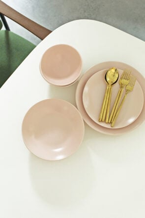YEAR & DAY // This brand has been on my radar for some time, and this set was a must-have when our house was finally finished! I love how cheery, yet minimalist these pink plates are (also be sure to check out the platters and bigger pieces too)! I also wanted to invest in some gold tone flatware that was dishwasher safe and these were by far the most recommended. They have held up beautifully.