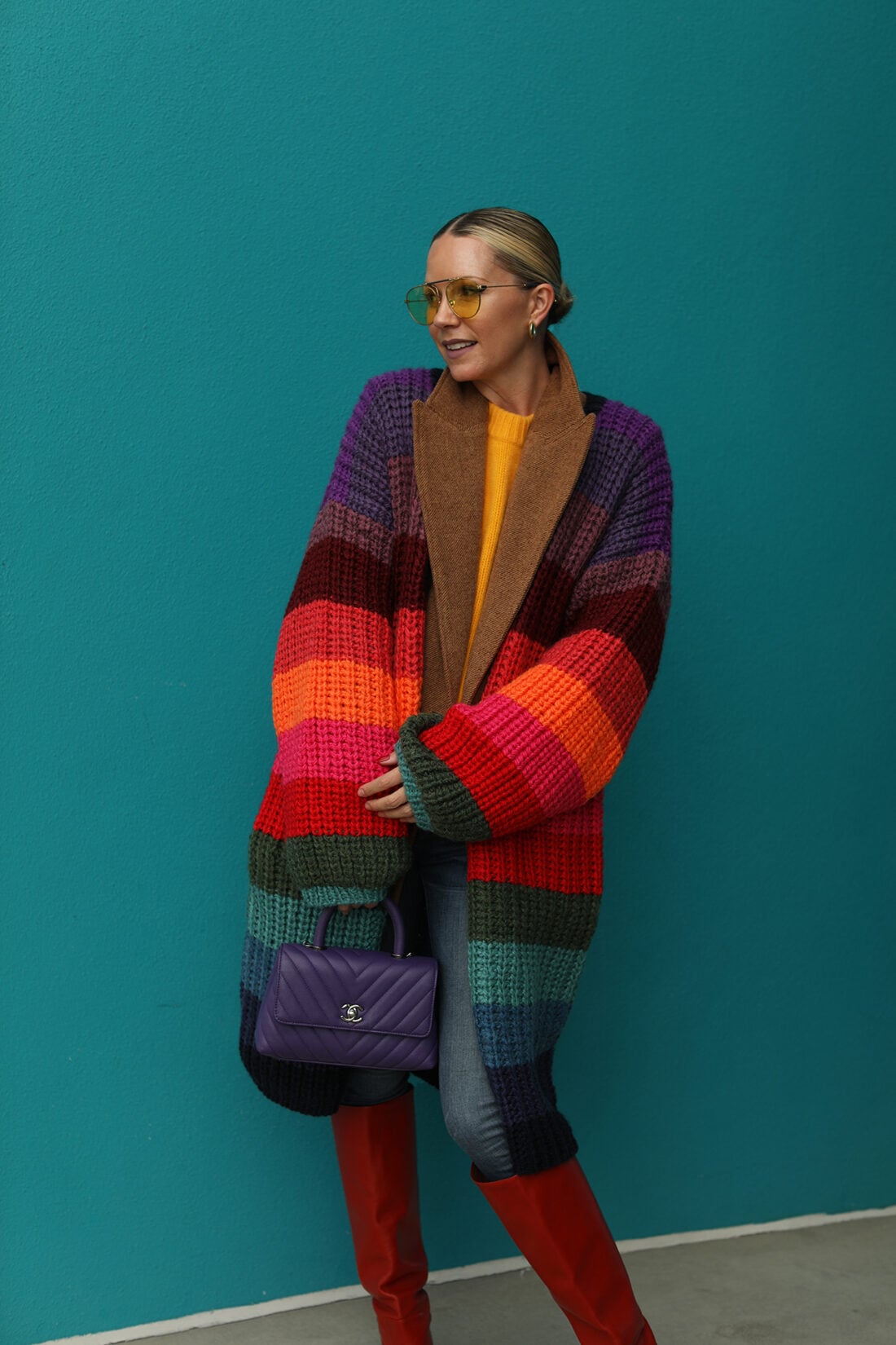Sweater: Farm Rio // Boots: Paris Texas // Blazer: Nordstrom. Sweater: Naddam (old) // Earrings: Kendra Scott