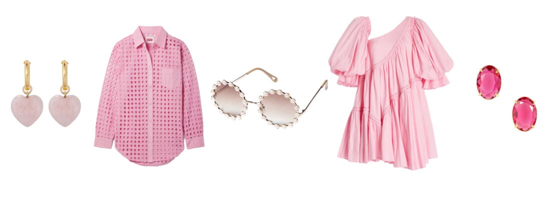 PINK HEART EARRINGS // EYELET COVER UP // PEARL ROUND SUNGLASSES // PINK MINI DRESS // OVERSIZED STUDS