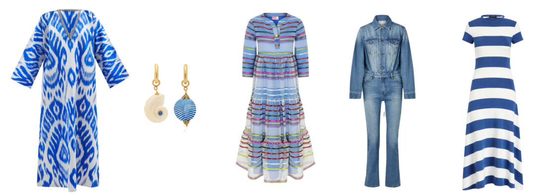 BLUE PRINT COVER UP // SHELL EARRINGS // STRIPE OVERLAY DRESS // DENIM JUMPSUIT // TSHIRT DRESS