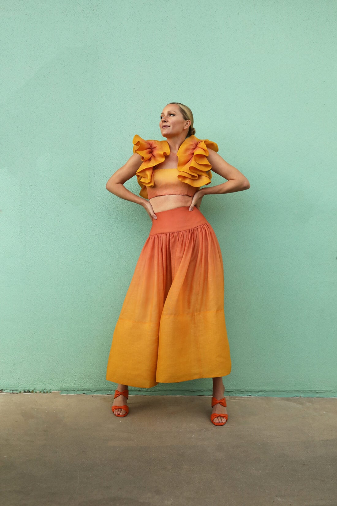 Top: Zimmermann // Skirt: Zimmermann (also don’t sleep on this ombre maxi option here) // Shoes: Aquazzura (the set would also look great with these)!