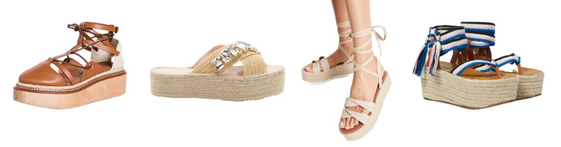 STRAPPY SANDALS (these are on my wish list) // BEJEWELED ESPADRILLES // WRAP SANDALS (Under $25) // STRIPE SANDALS (also love these)