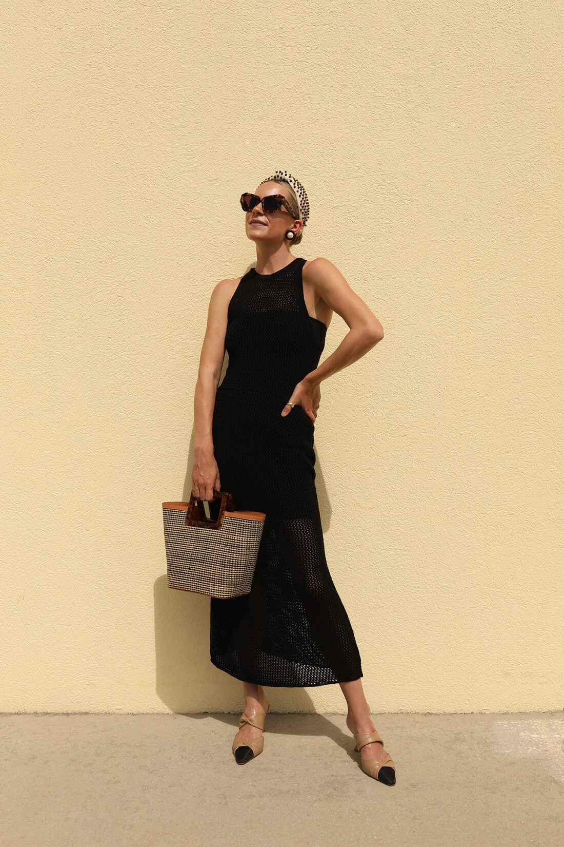 LOOK TWO // Dress: Open Edit // Jacket: Acler // Shoes: Cult Gaia // Necklace: Tuckernuck (back in stock) // Hat: Eric Javits // Bag: Bembien