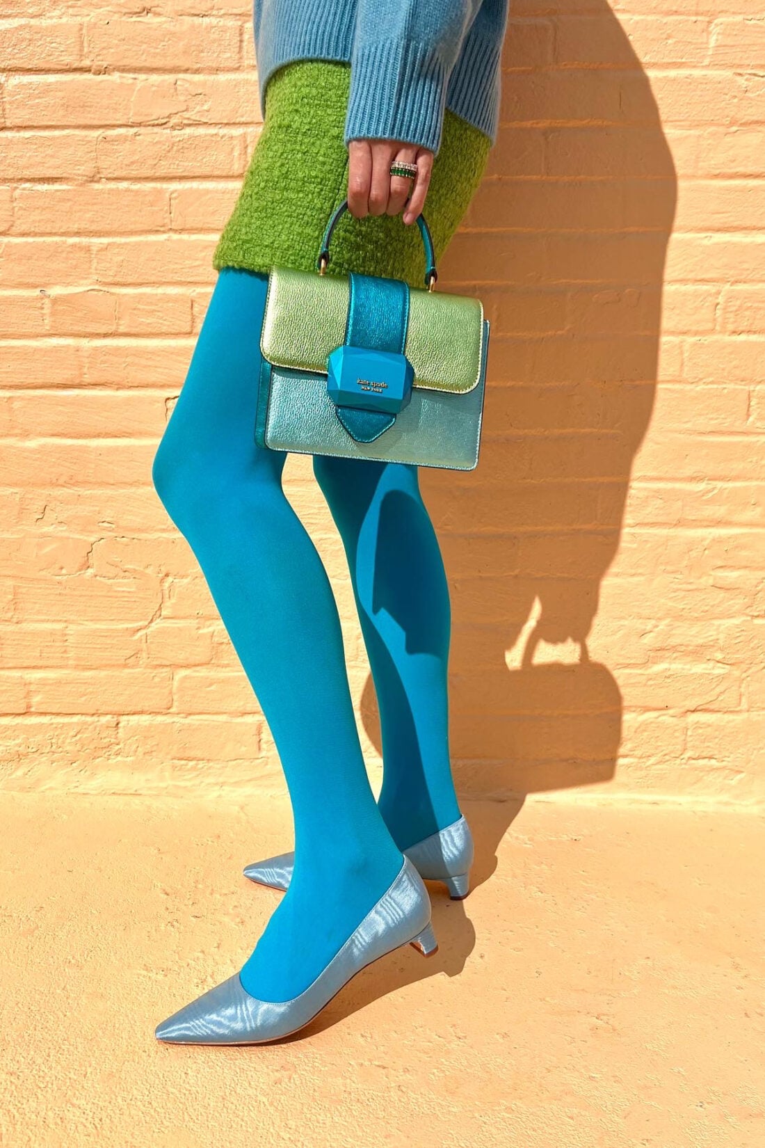 Probably the easiest, yet most on-trend, color combination at the moment – green and blue. I actually wore this green and blue striped top just this week. It made the perfect starting point for creating a casual green and blue look. This green and blue winter outfit is another favorite. Again, for me, the key is finding fun shades of these hues that are a bit unanticipated. Apple green, turquoise blue, robin egg blue…there are so many interesting shades of these colors to play around with when brainstorming green outfit ideas!