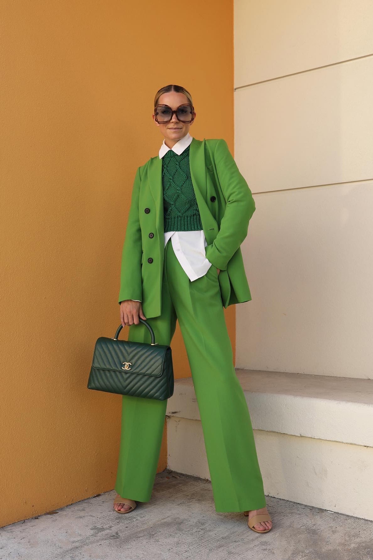 Okay, so the way I see it, there are two main ways to create a chic, creative green outfit – monochromatic or combining quirky color combinations. You know I love a matchy-matchy look and that also applies to color. So, unsurprisingly, I am a big fan of monochromatic dressing!
