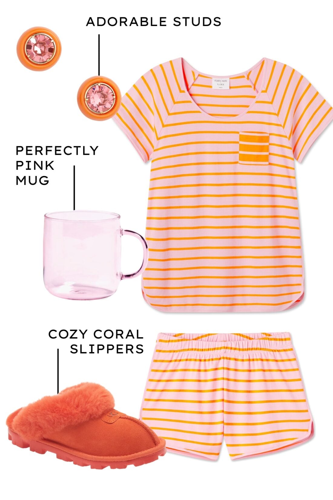 The Avery Shorts Set – Pomelo Stripe // Earrings // Mug // Slippers