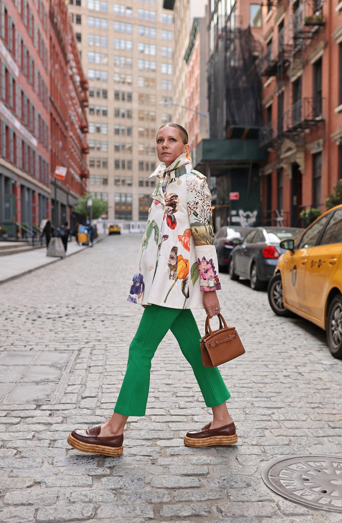 I don’t tend to play favorites, but the Penny in Kelly Green just might be the one. It is such a stunning shade that feels so on trend and totally summer ready. Here I am wearing it with this oversized white top, palm bag, TNuck earrings, and these platforms. To switch it up while in NYC a few weeks back, I wore with these platforms and a floral Stella McCartney trench that I snagged a few years ago on the Real Real. If you are a fan of florals I would wear it with this top! Looking for something that screams vacation ready? I would recommend pairing it with this top!
