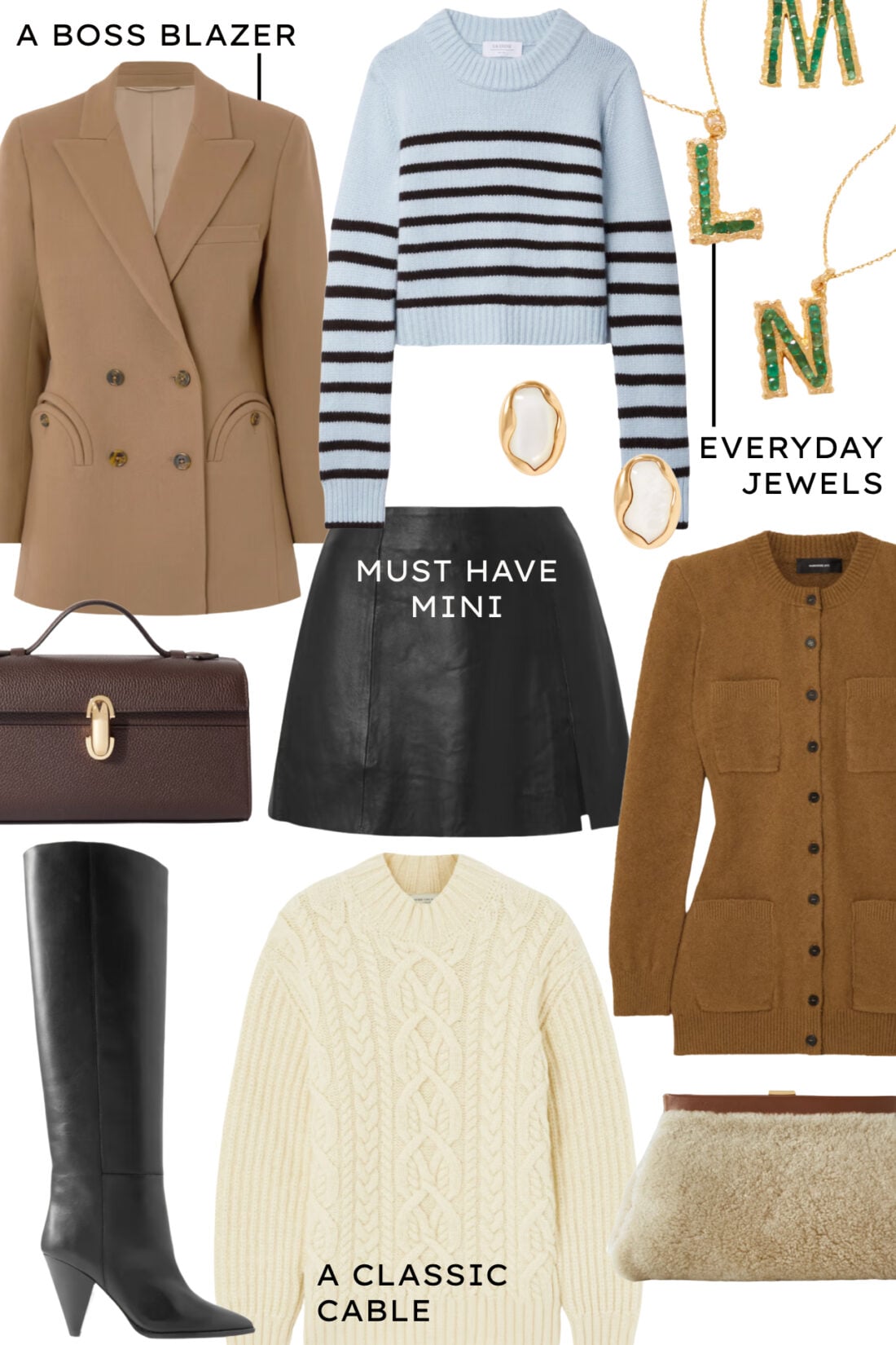 A few of the things at the top of my list this season? A new pair of everyday boots, a great cable sweater (also eyeing this collared one), and a new non-logo bag. I am always adding striped sweaters to my closet and I just picked up this one from one of my all-time favorite knit brands (you can shop them all here). I feel like this is going to be the season of the mini so I’ve contemplated adding a super minimal black mini to my wardrobe.
