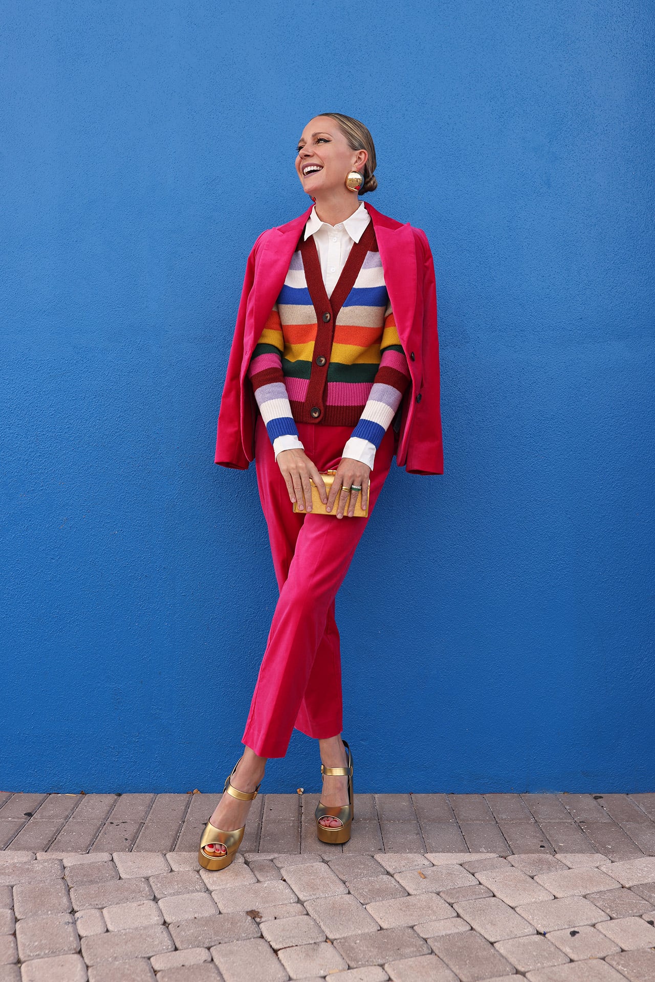 OUTFIT ONE: Velvet Blazer // Velvet Pants // Rainbow Cardigan (also love this vest)