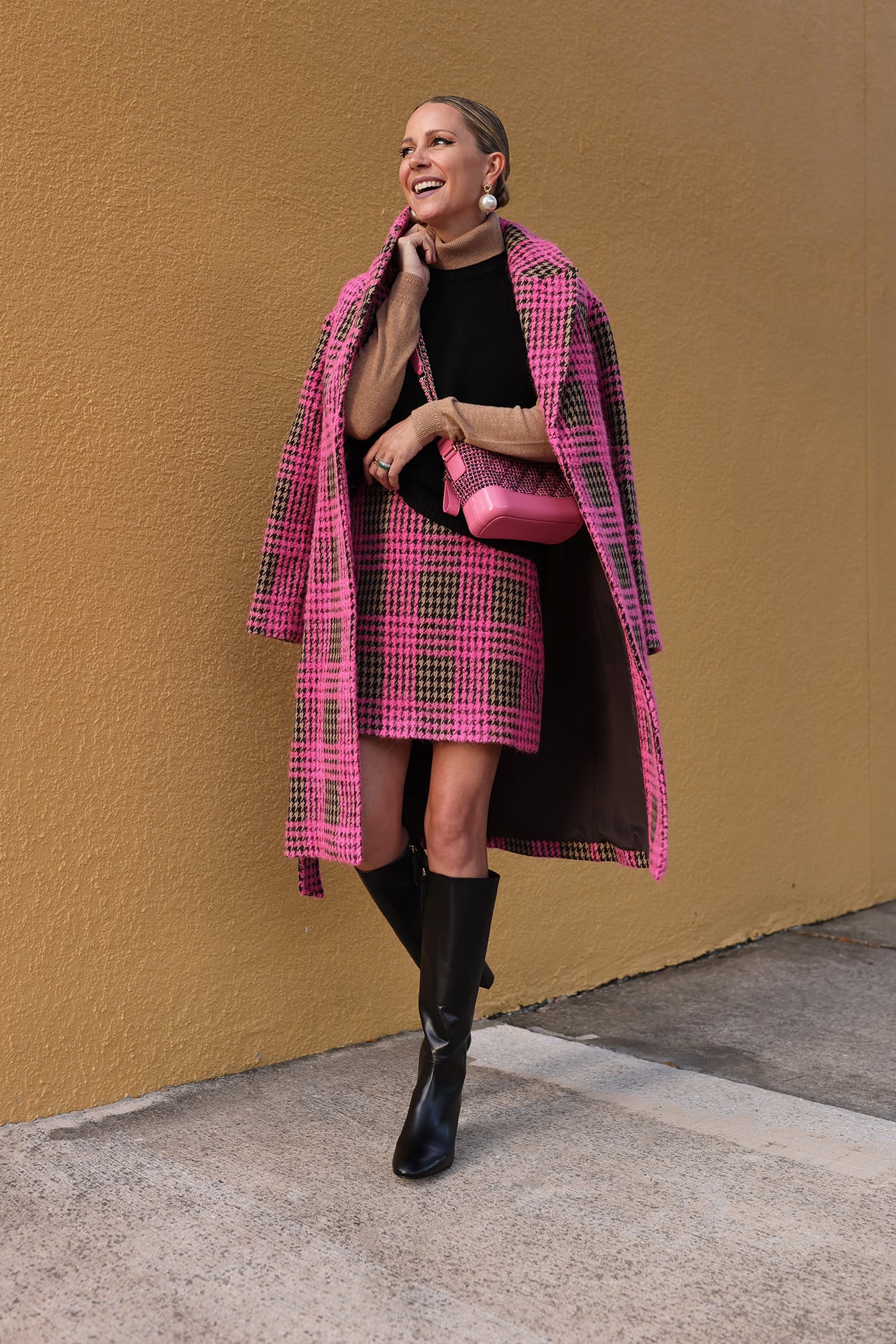 OUTFIT TWO: Plaid Skirt // Plaid Coat // Sweater Vest // Turtleneck Sweater // Black Boots
