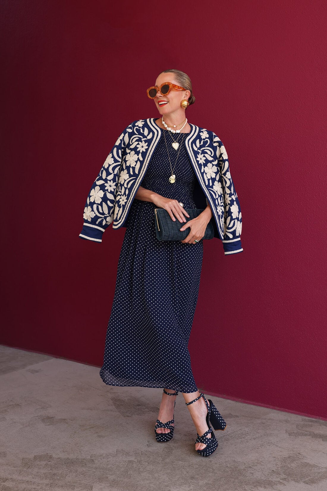 As you know, platforms are my preferred heel these days. The Hill House Home Party Platform is comfortable, runs true to size, and comes in so many amazing iterations. I have a light blue pair that I’ve styled with everything from a monochromatic black look to a statement skirt and sweater outfit. My current favorite pair is this navy and white polka dot, which is perfect for summer. I will be wearing it with this matching polka dot dress for a head-to-toe printed moment, a look that has become one of my defining styles over the years!