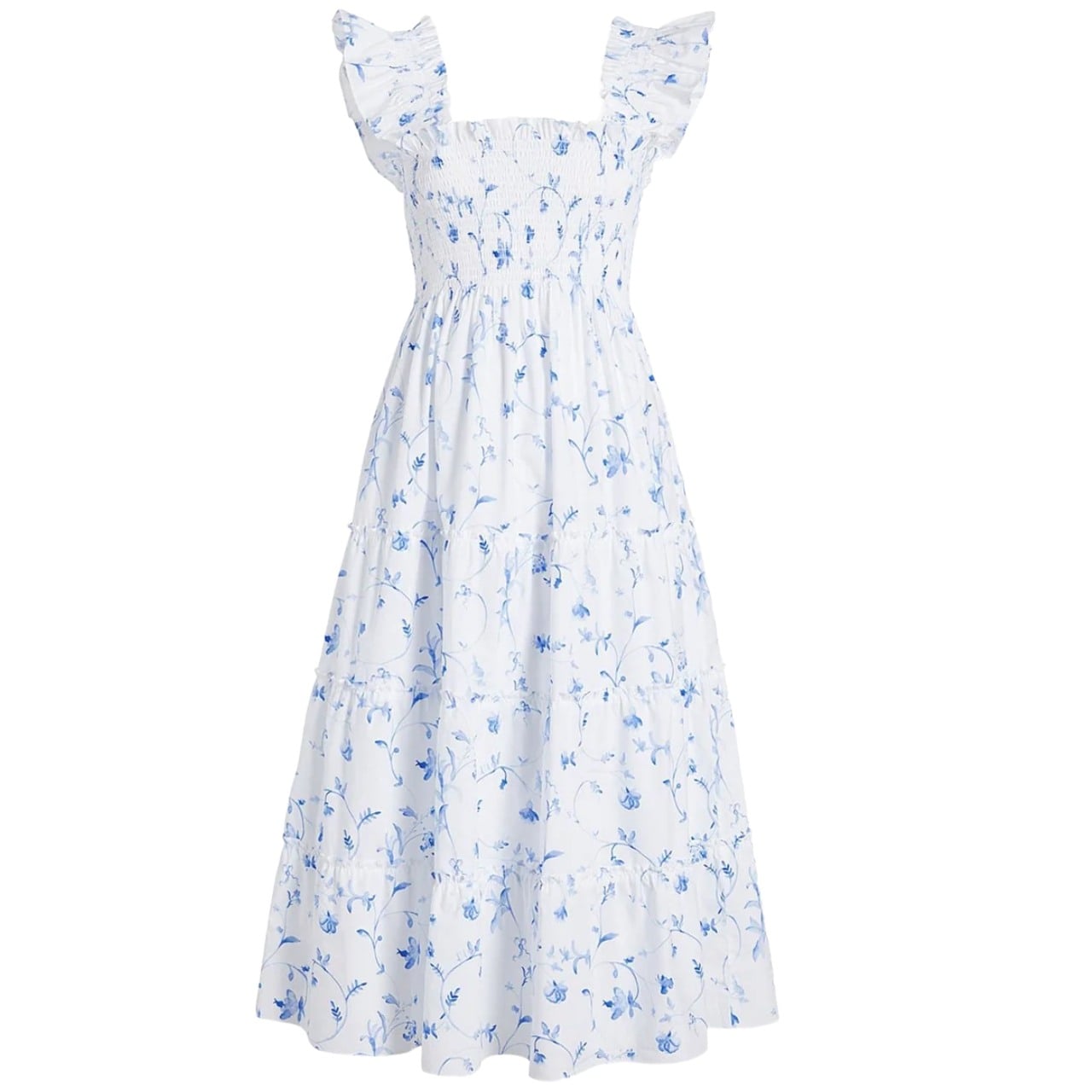 The Ellie is the original Hill House Home dress that went viral, and five years later, it’s still one of their most-loved styles. It consists of a smocked bodice, a tiered midi skirt, and smocked, ruffle shoulders. It’s forgiving, comfortable, and dressy, without being fussy, making it a must-have in my book!