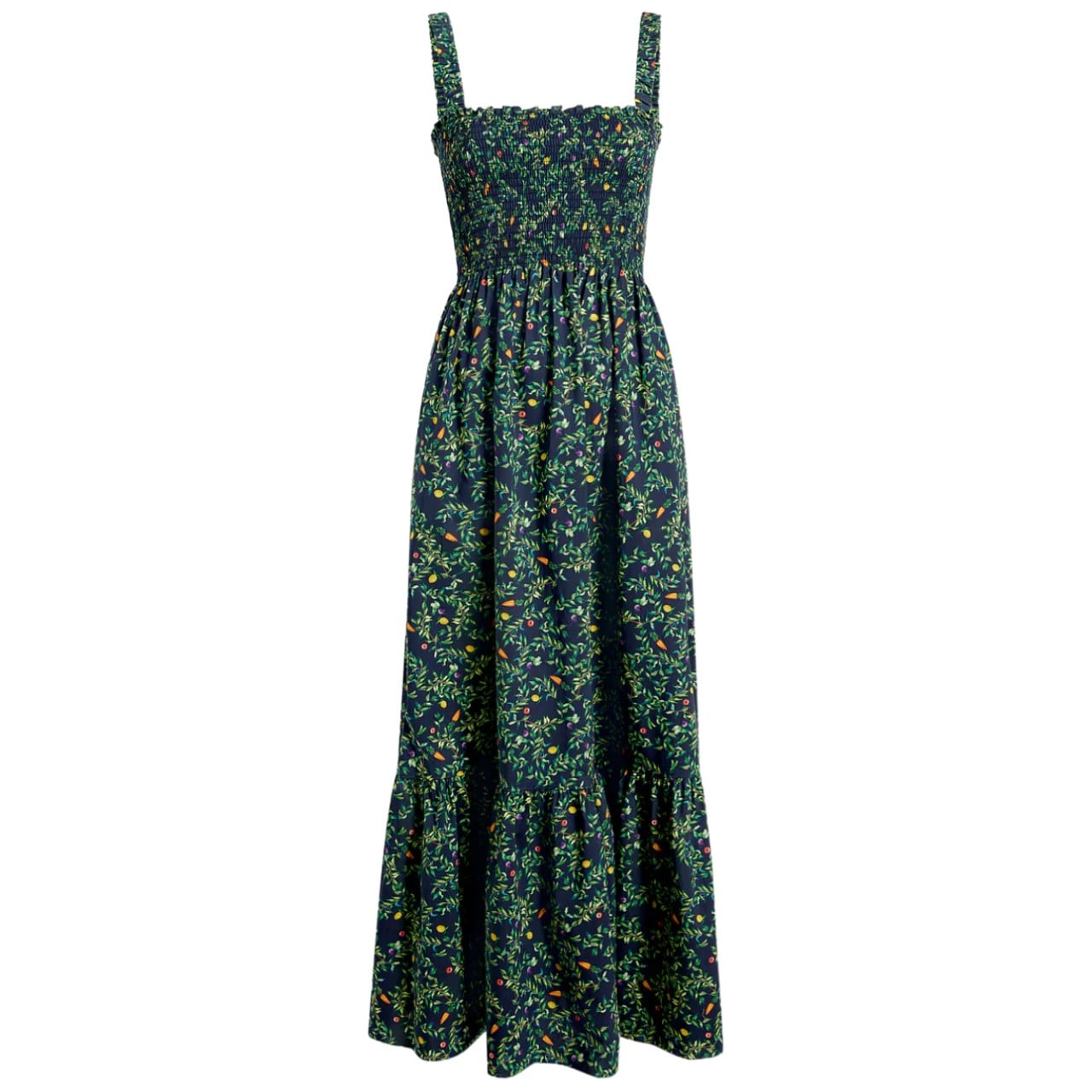A dark floral feels so chic for high summer, so I am elated that this print is back. The Midnight Garden print has been reissued in both the Ellie and the Anjuli. I love how elegant this elevated print feels in this more streamlined silhouette. I would pair this Hill House dress with a minimal black sandal and a black satin bag.