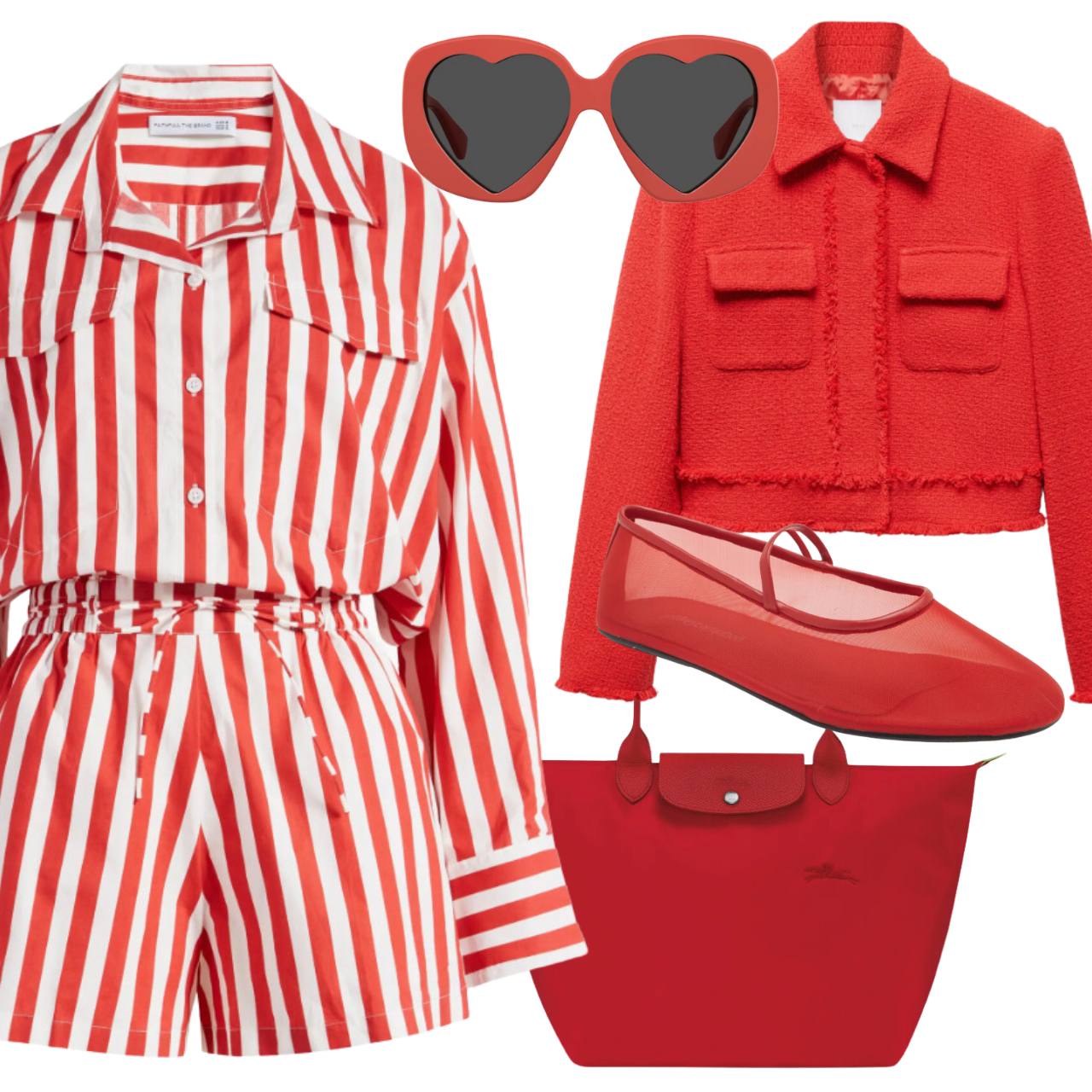 Striped Romper // Heart Sunnies // Tweed Jacket // Mesh Flats // Tote Bag