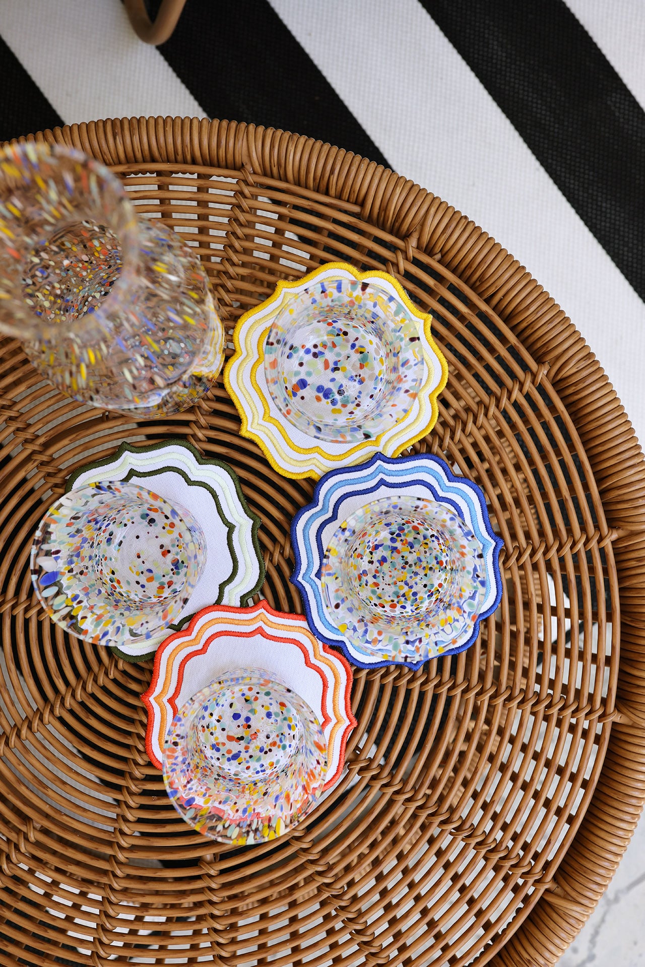 Hi my name is Blair and I love color. If you have been following for any amount of time, you surely already know that! Recently I have picked up so many amazing colorful items like these cocktail napkins, these glasses, this pitcher, and these napkin rings. They are the perfect entertaining items for our vibrant, Florida cottage!