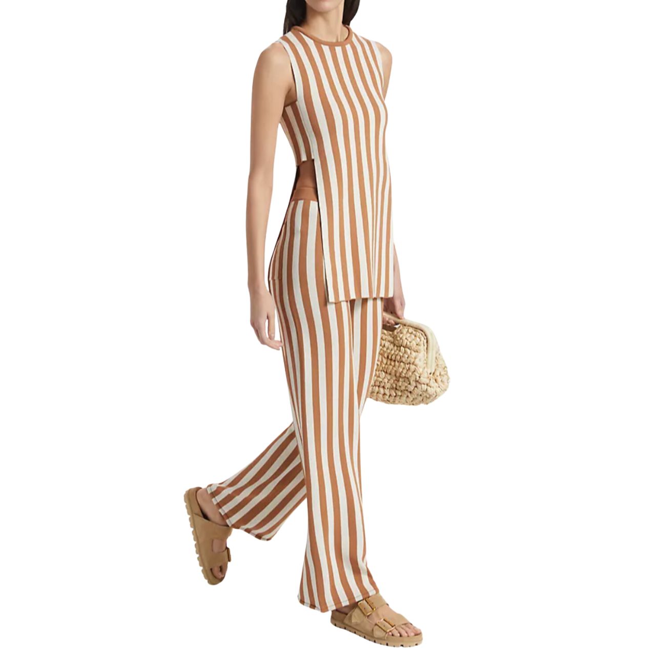 I just bought this top and this pant and can’t wait to style them for summer. This set is the perfect example of how something can be unbelievably comfortable and chic all at once. This set would look awesome with these sandals or these fun flats. Also if you love this khaki and white stripe check out this mini dress here.