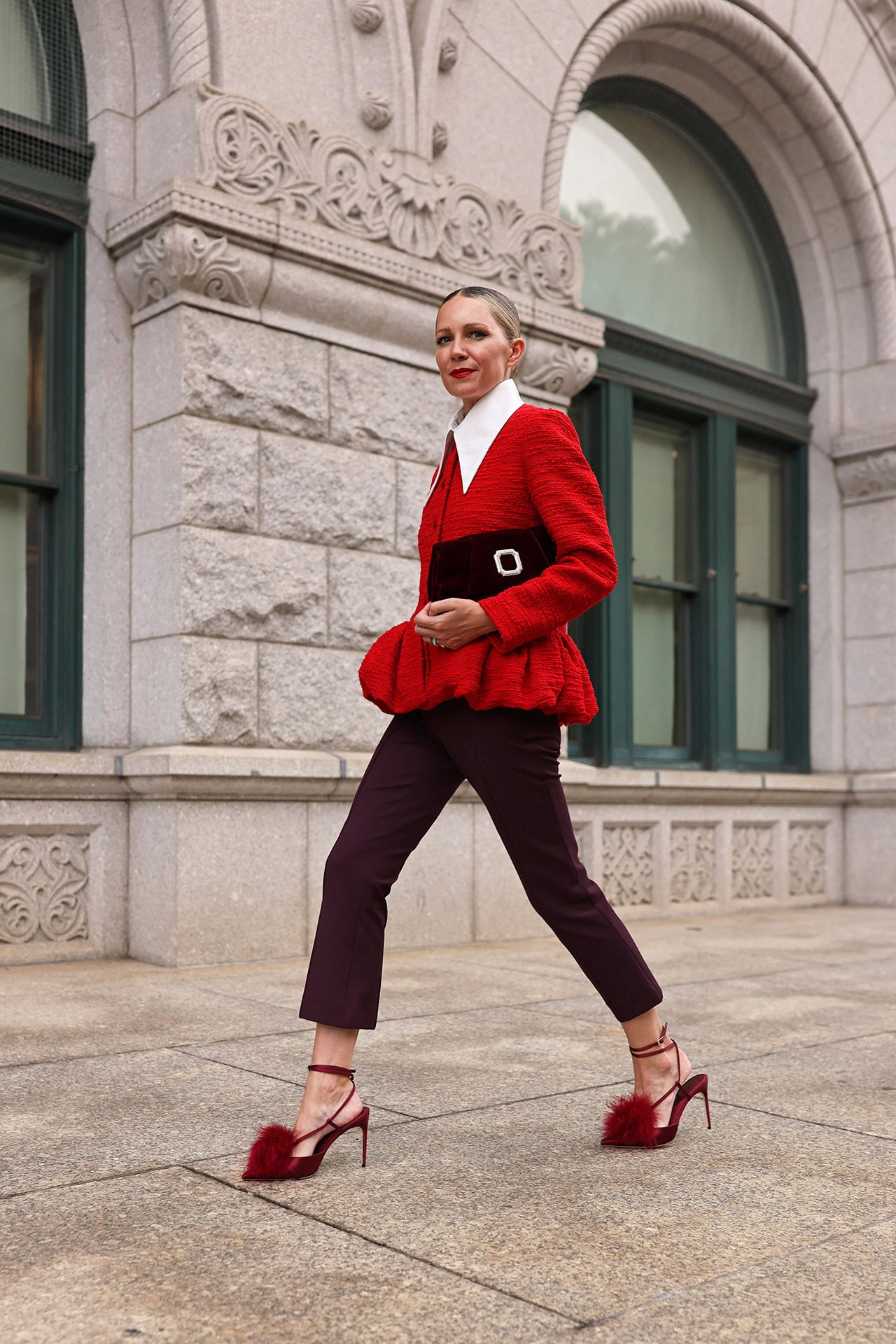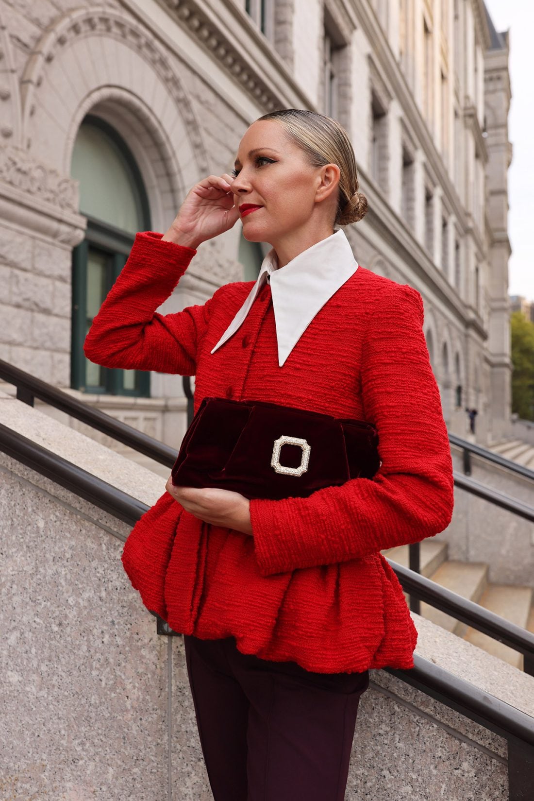 Let’s talk about fall color combinations! I am currently loving burgundy for the season and one of my favorite ways to wear it is back to red. I have been eyeing this jacket for some time and when I got these shoes and this clutch I knew it would make the perfect pairing! See below for more of my favorite red and burgundy pieces, perfect for fall and into the holiday season…