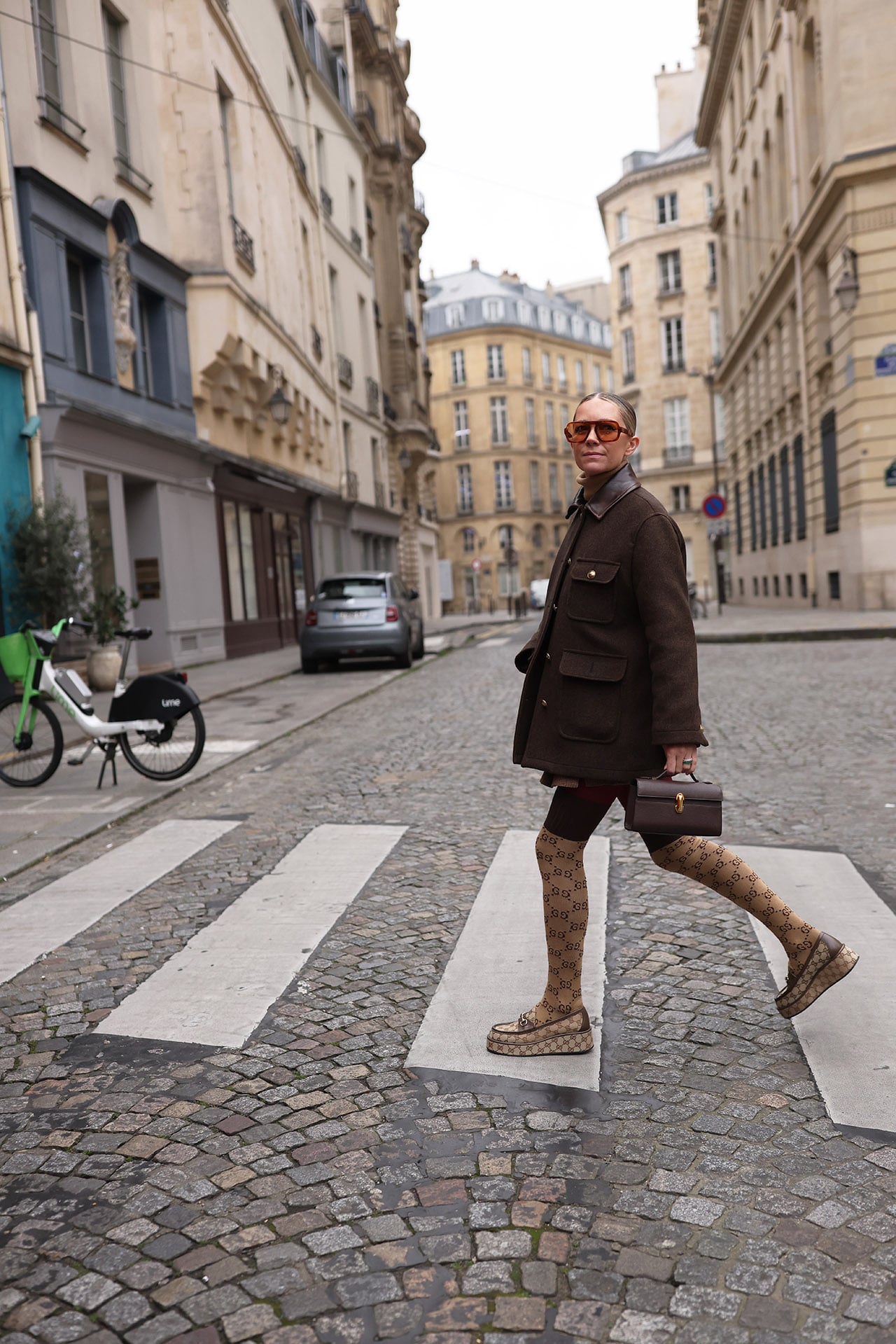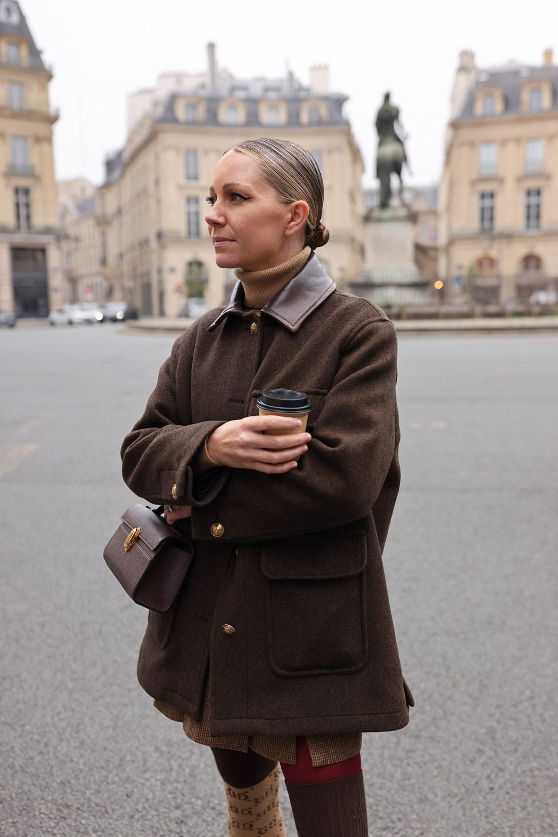Jacket: Sandro // Shoes: Gucci // Skirt: Nordstrom (also love this one) // Turtleneck: Sold out, similar here // Socks: Gucci // Sunglasses: Elisa Johnson // Bag: Savette