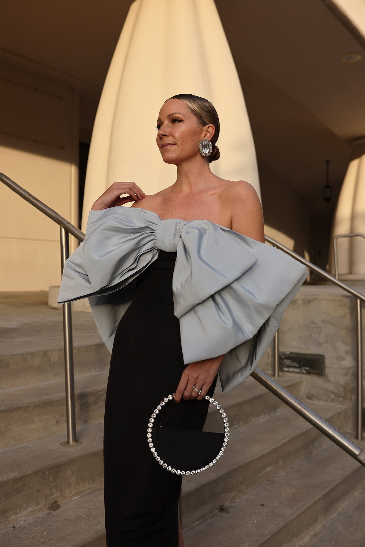 Sharing a few looks from events this winter season! The black and ice blue bow look is from one of my favorite formal brands – Alexia Maria. I’ve styled it above with this purse that I have owned for three years (and worn countless times) along with these chic yet cheap gloves! The next look, a deep maroon sequined stunner, is from Teuta Matoshi. This season got me thinking about great bag and earring combos and I thought I would highlight some of my current favorites below!
