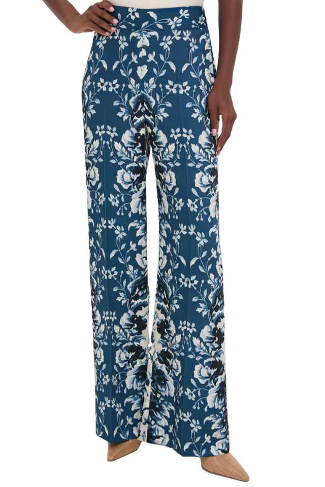 BLUE PRINTED CREPE WIDE LEG PANTS