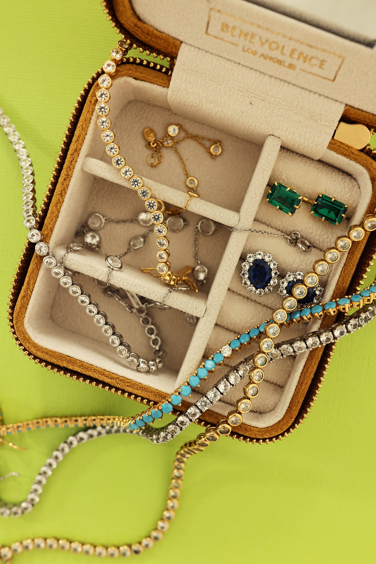 I also have a few pairs of Dorsey statement earrings. These gorgeous green drop earrings are simply breathtaking. The crystal emeralds are great year-round but feel especially festive during the holidays. I also own and love these blue sapphire studs—regal is the first word that comes to mind when I see them. They’re timeless and elegant. Heads up…this pair is a limited edition, so once it’s gone, it’s gone!