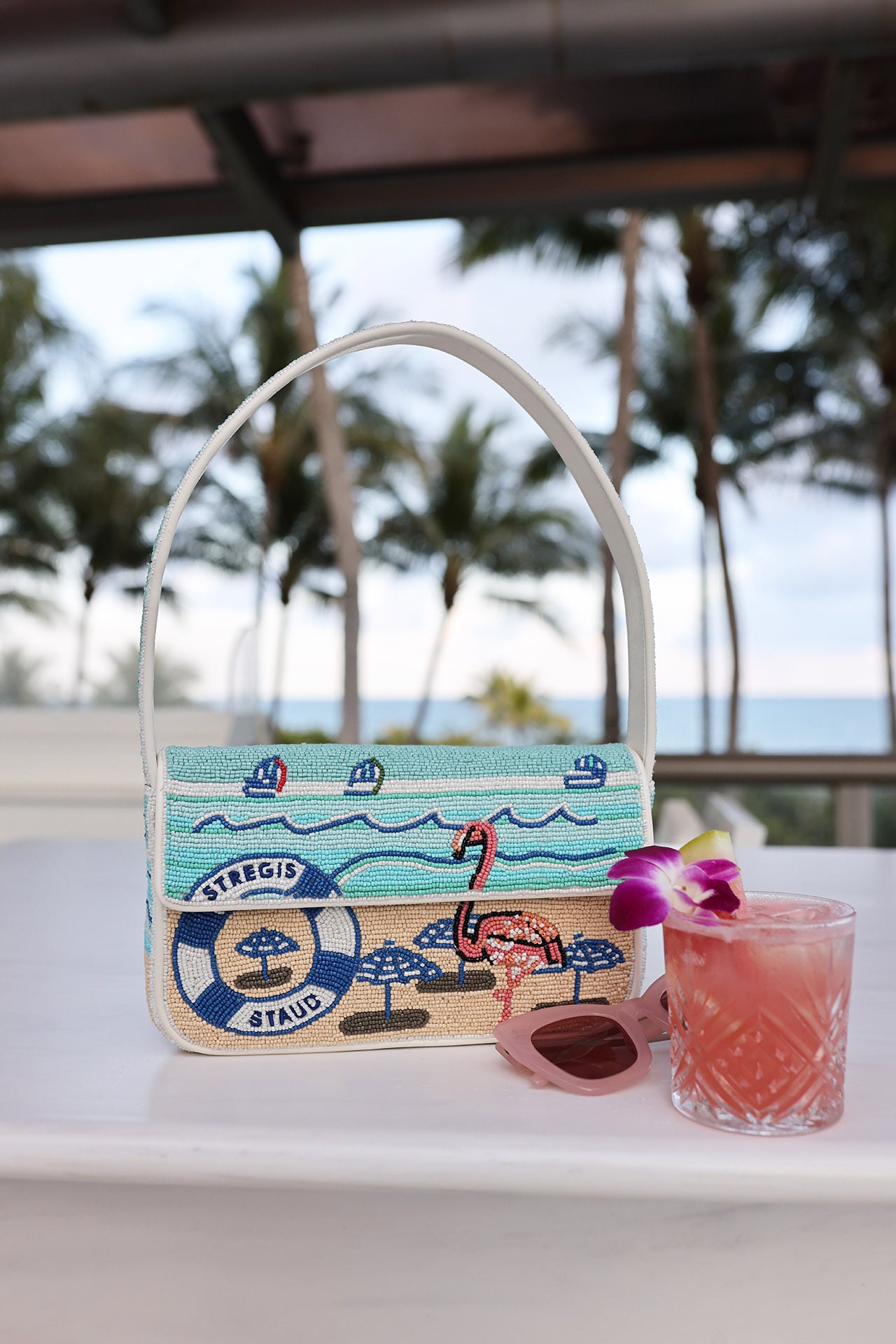 I had the pleasure of heading to the the St. Regis Bal Harbour earlier this month to celebrate and style an incredible collection that Staud created in collaboration with St. Regis. The limited edition collection consists of four styles – three bags and one hat. Everything is resort ready and has beautiful, subtle nods to St. Regis. While I probably shouldn’t pick favorites, I am in love with the oversized tote. It is so chic and practical, similar to the day to night moon bag that has become a Staud classic. Discover each of the styles below!
