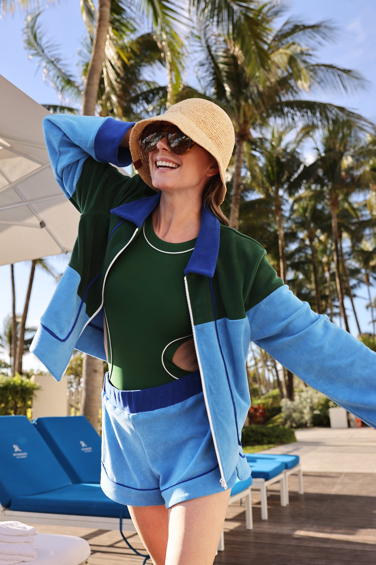Talk about a beach tote. This style is oversized and beautifully crafted. I love how this neutral bag pairs so well with all my resort brights! Especially these terry shorts and this zip up I have been living in.