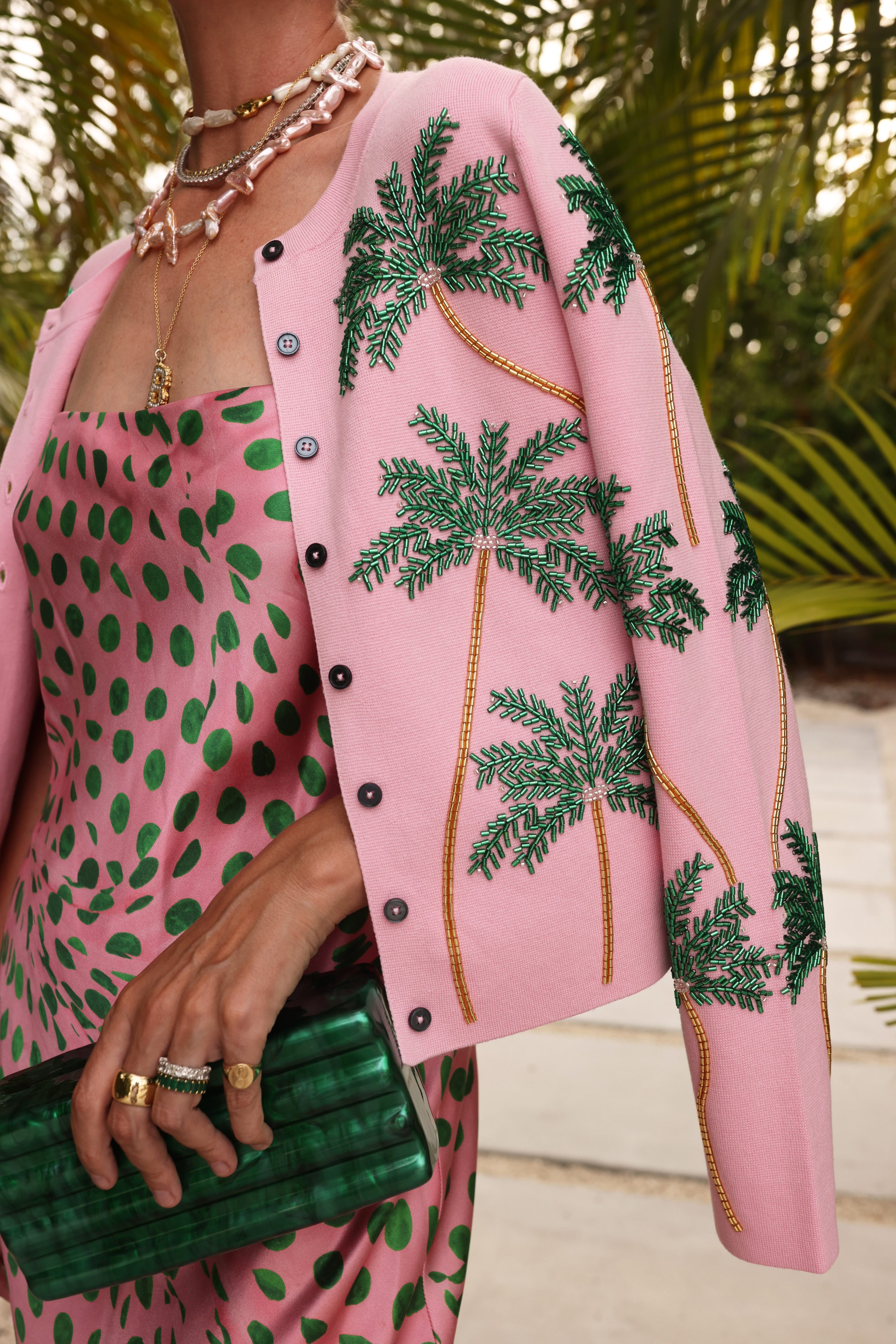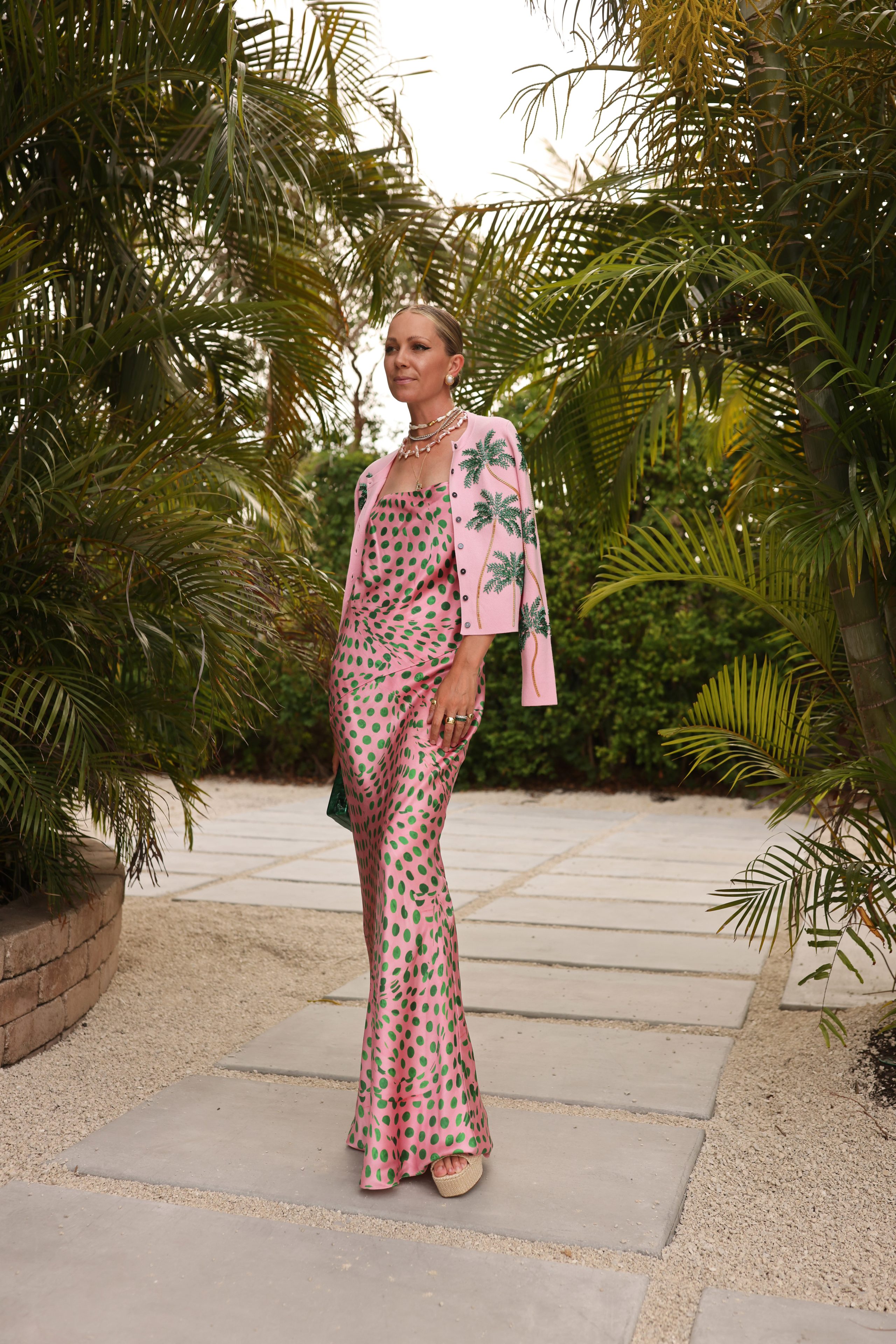 Dress: Brandon Maxwell (purchased on The Real Real) // Cardigan: Boden // Bag: Amazon // Necklaces: here, here, here, and here. Earrings: Pacharee