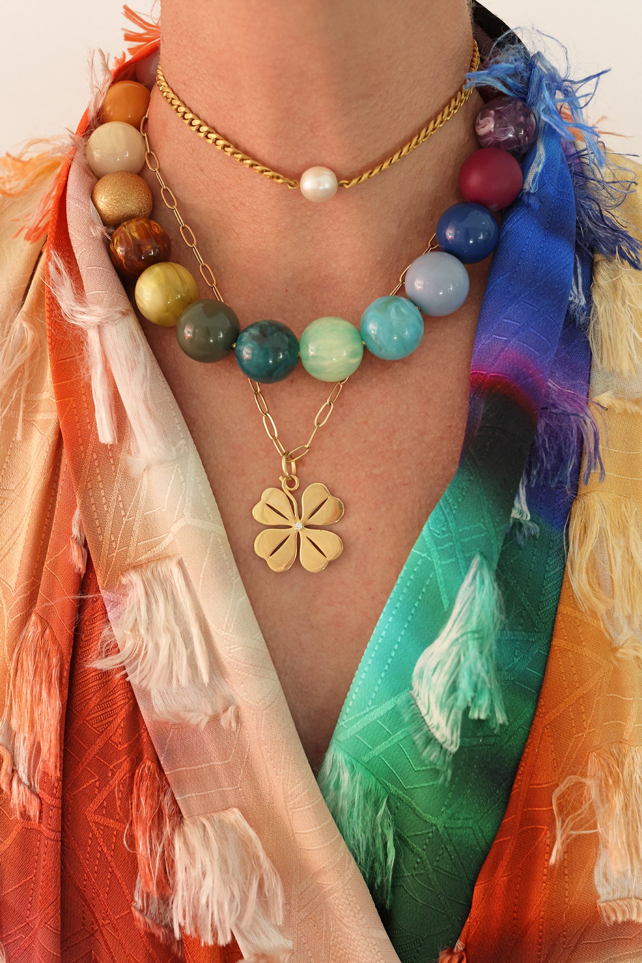 IMAGE TWO: Rainbow necklace, clover necklace, and choker (Pacharee, old)