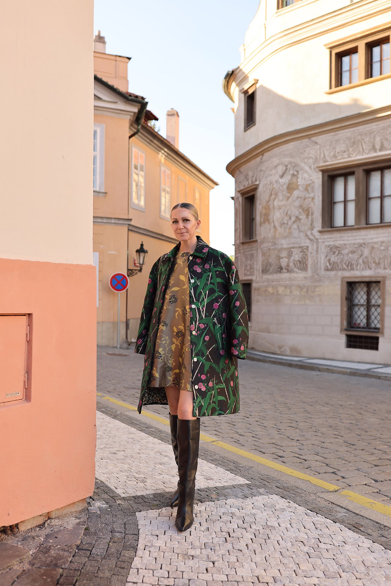 It’s time for some print mixing! For me, fall can be hit or miss when it comes to prints, but this AW25 has delivered! There are so many pretty, pretty prints ranging from fem florals, to interesting geos, to your classic animal prints. While in Prague I mixed this swing mini dress with this dark floral coat and added these boots (that are included in the F&F event right now)! The boots are a slouchy leather with a block heel – perfect for long, long days of walking and exploring the city.
