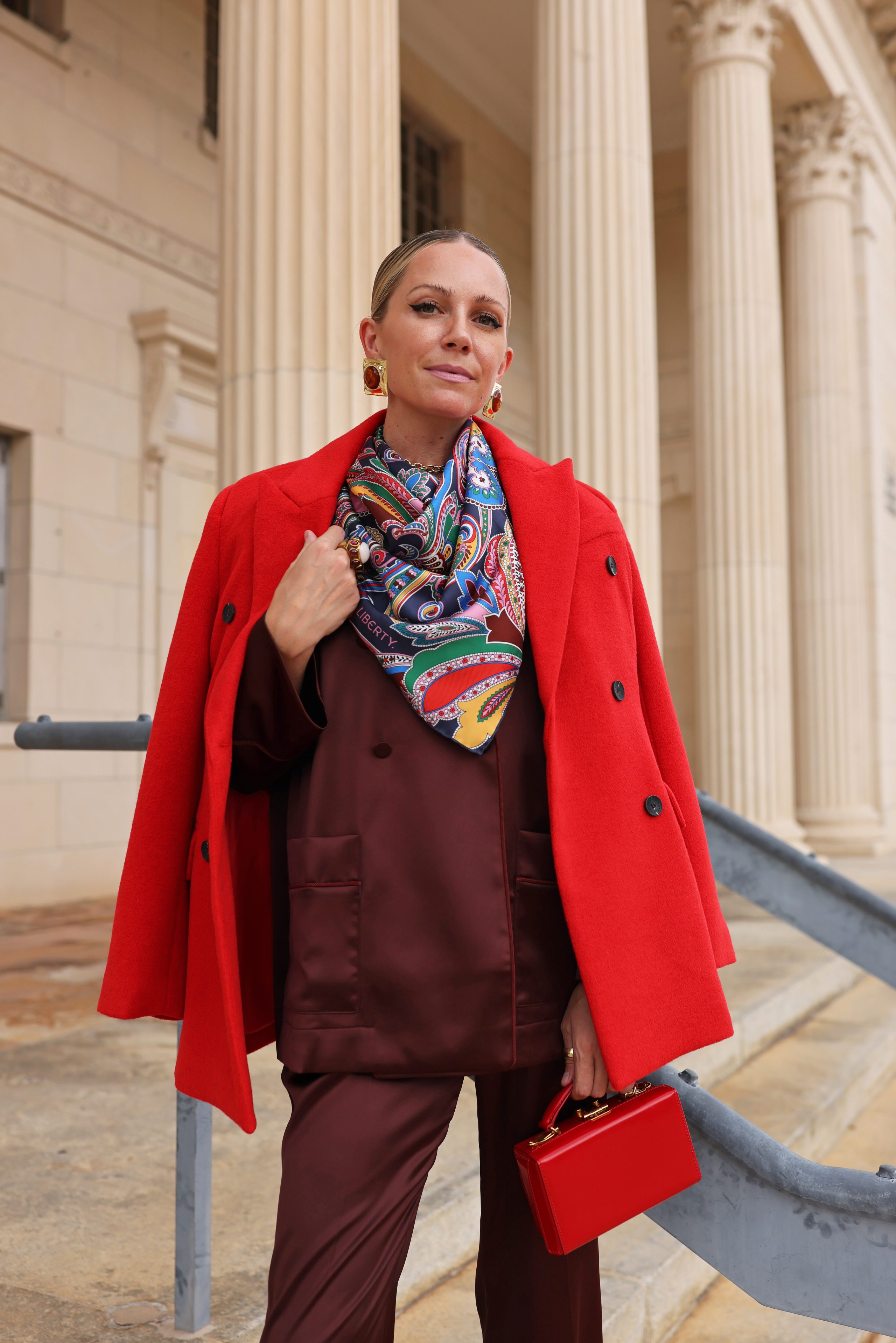 A major milestone with Liberty…celebrating their 150th anniversary! I was honored when the iconic retailer asked me to style my favorite printed scarves from their AW25 collection. I ended up choosing two – this scarf as well as this one. Both delightfully colorful and so easy to mix and match back to so many hues in my closet. I also picked these pants and this top that created a nice head-to-toe print mixing moment.