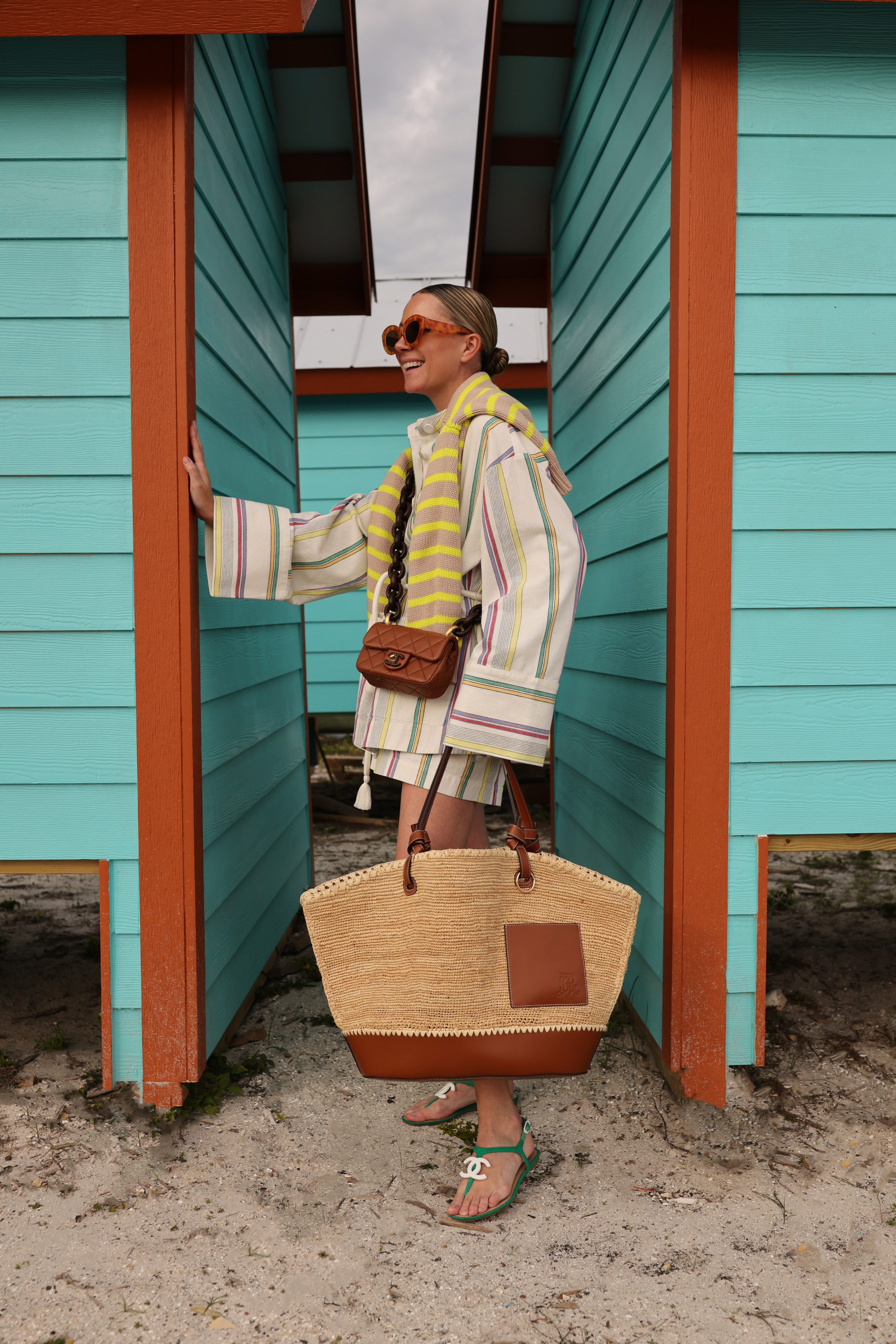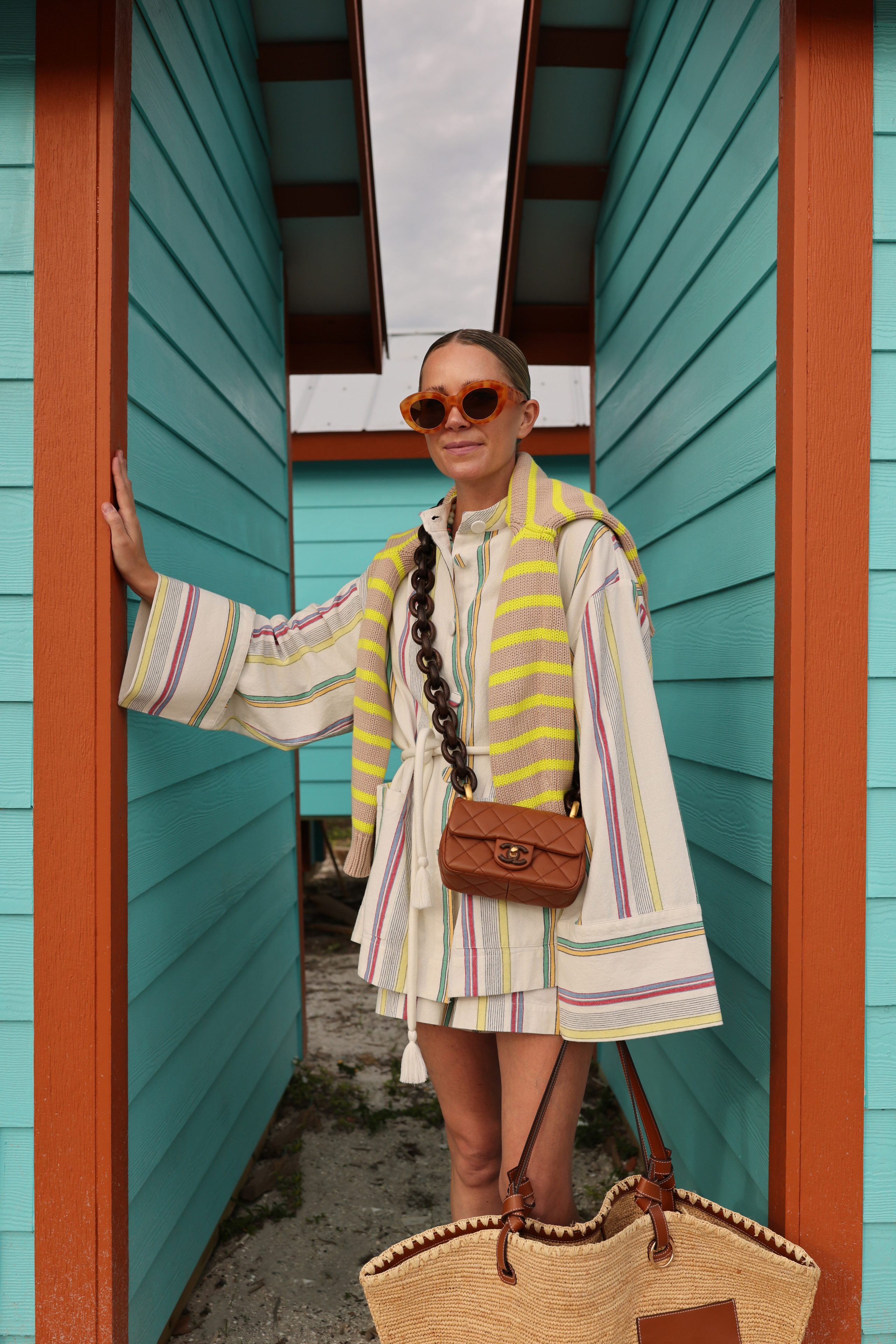 This rainbow stripe jacket and matching shorts are probably my two favorite pieces from the collection. I wore them with an old pair of Chanel sandals that I found on TRR, this necklace, and my bag from the Staud x St. Regis collection. There is also an adorable matching ric rac dress here!
