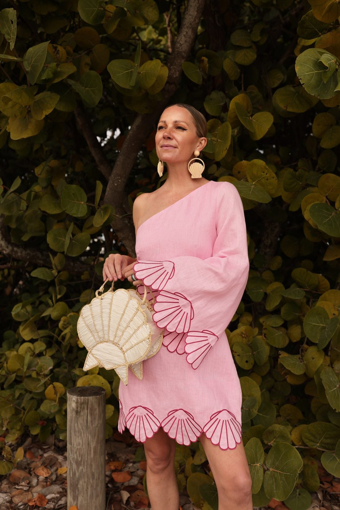 A very close second would have to be this one shoulder, shell embroidered dress. I love how perfectly it goes with this Poolside bag and these shell wooden earrings that I picked up on Etsy a few years ago. Bonus points: it is under $200! If one shoulder is not your thing, check out this kaftan coverup in the same color and featuring the same details!