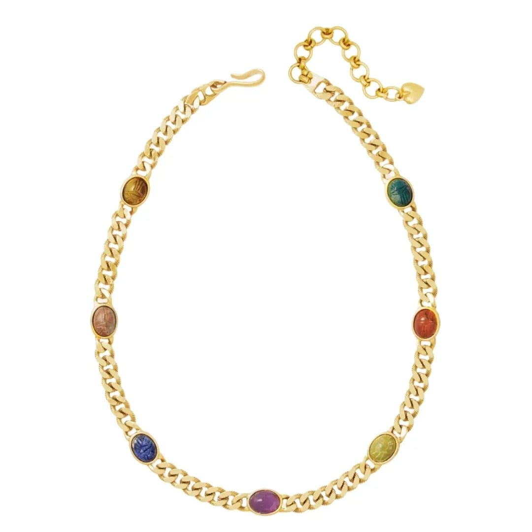Let’s style some warm tones. Pairing one of my favorite BaubleBar necklaces (I own it in multiple colors) with this new-to-me Chanel necklace and this long strand (that can be doubled or tripled). The earrings are by Lizzie Fortunato and the striped top is from Simon Miller!