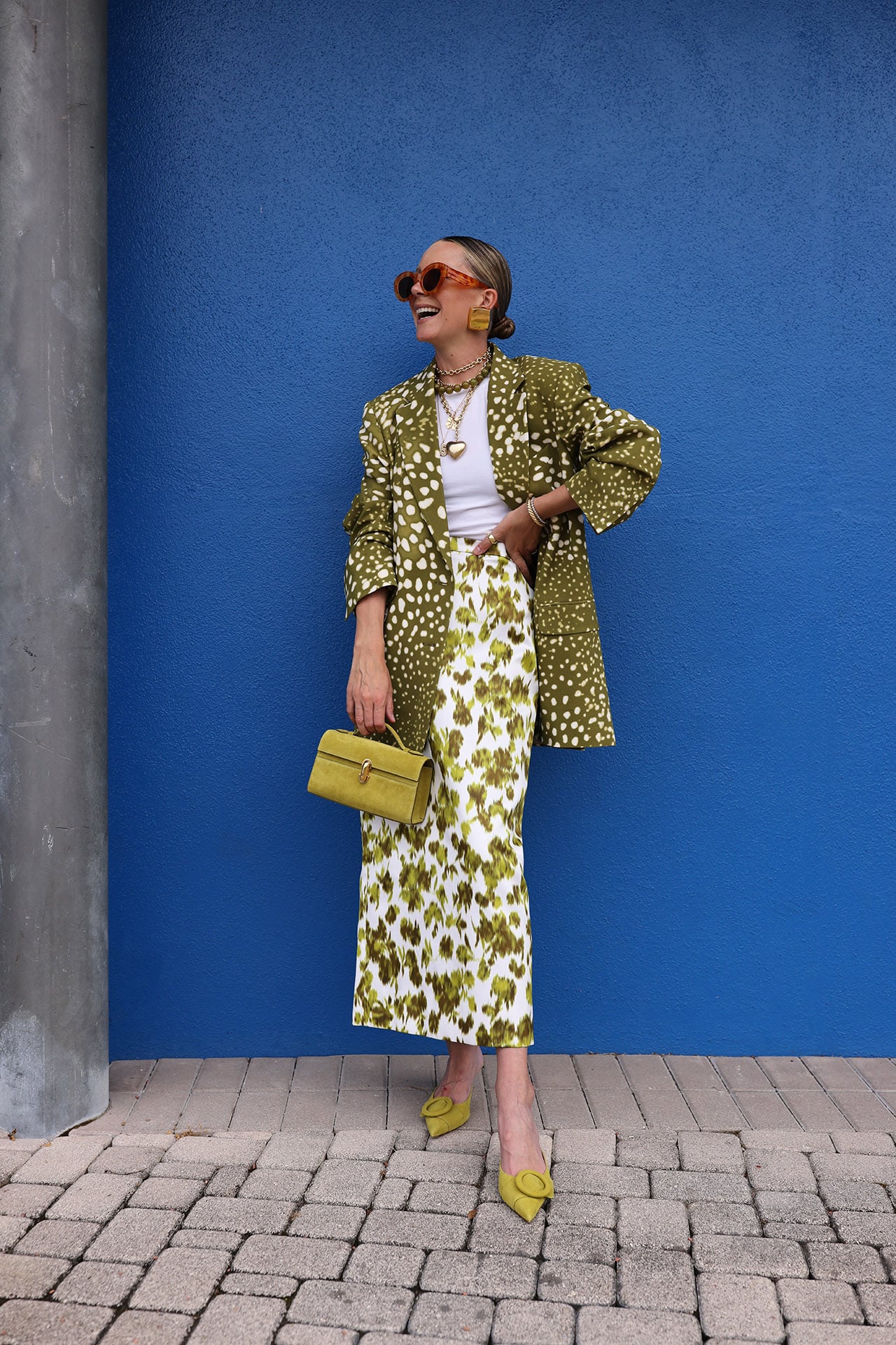 Spring is the perfect season to get creative with pencil skirt outfits. The length feels just right for the weather, and you can easily add layers to stay warm if there’s still a chill in the air. Today, I’m leaning into the idea that more is more — scarves, brooches, vivid colors… let’s play around and have some fun!