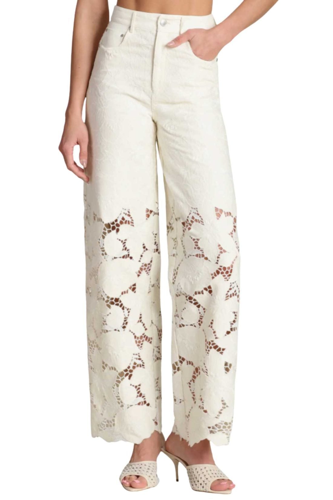 This romantic floral lace top is available in a Peach shade as well as an Ivory option. I love this top styled as a neutral basic back to denim (as shown) or dressed up as a silk on silk moment with flowy wide leg pants.