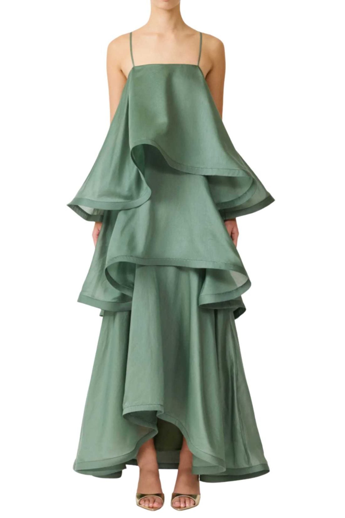 A stunning sage green statement dress! Can green be a neutral – I think so! The flowy flares of fabric are so striking. I ordered this dress and LOVE it.