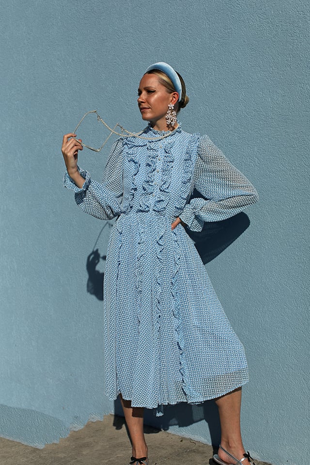 Earrings: Lele Sadoughi // Headband: Nordstrom // Sunglasses: Lele Sadoughi // Sunglass Chain: Lele Sadoughi // Dress: Sister Jane
