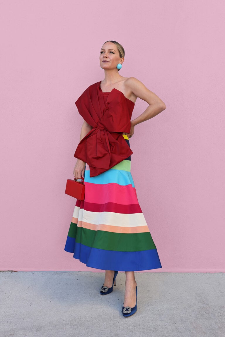 Top: H&M (under $75) // Skirt: Rosie Assoulin // Shoes: Manolo Blahnik // Earrings: Saule Label
