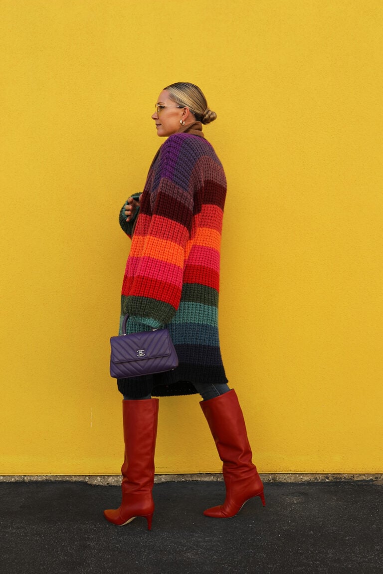 CARDI PARTY Sweater: Farm Rio // Bag: Chanel via eBay // Earrings: Kendra Scott // Boots: Paris Texas Shop More