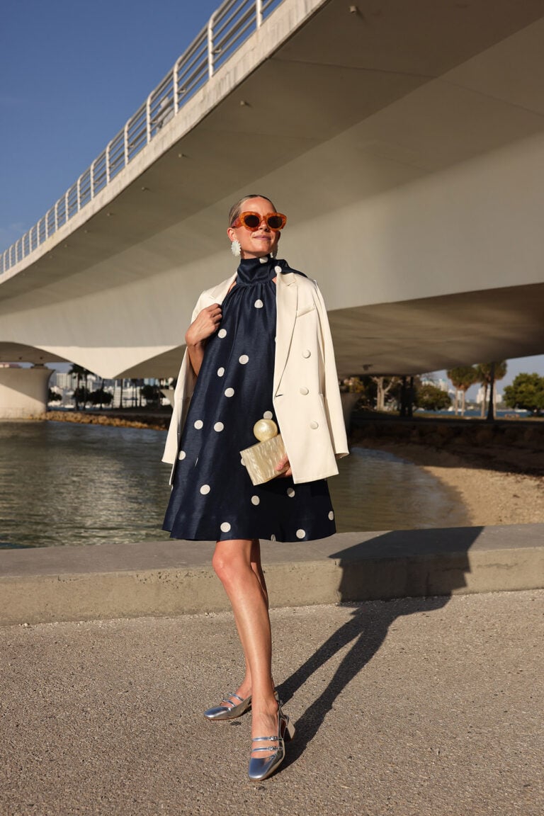 ECRU DOT Dress: Sézane // Jacket: Sézane // Shoes: Sézane // Earrings: Sézane // Sunglasses: Amazon // Bag: Cult Gaia (old)
