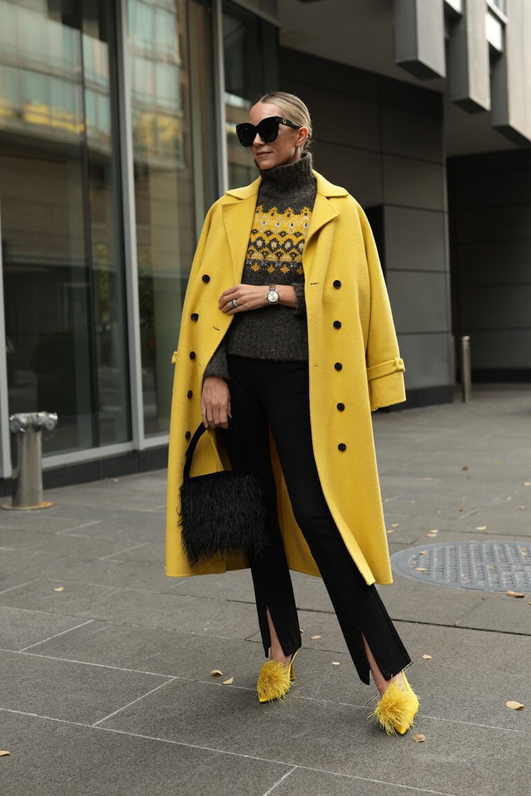 Fair Isle Sweater: Banana Republic // Split Flares: J.Crew // Feather Shoes: Nordstrom // Feather bag: Lele Sadoughi // Coat: Pixie Market (old, similar here)