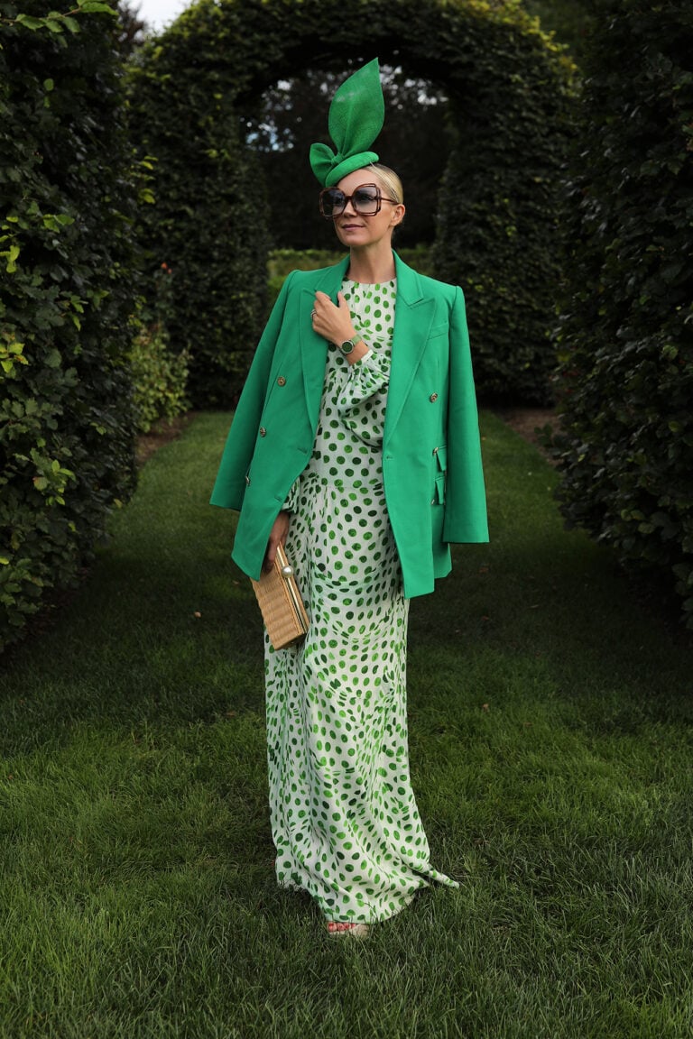 HAMPTONS Blazer: Zimmermann // Dress: Brandon Maxwell // Sunglasses: Linda Farrow // Bag: Pamela Munson Shop More