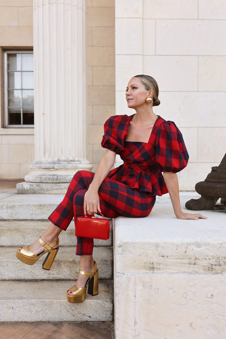 Top: Hunter Bell (would also look darling with a full skirt and pumps!) // Pants: Hunter Bell // Earrings: Chanel // Bag: Mark Cross