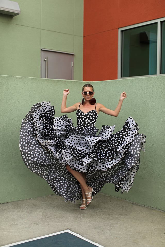 Dress: Carolina Herrera – see this one on major sale (also shop my favorite polka dot picks under $100 here, here, here and here) // Earrings: Maryjane Claverol (also love these) // Shoes: Zara, old // Sunglasses: Carolina Herrera
