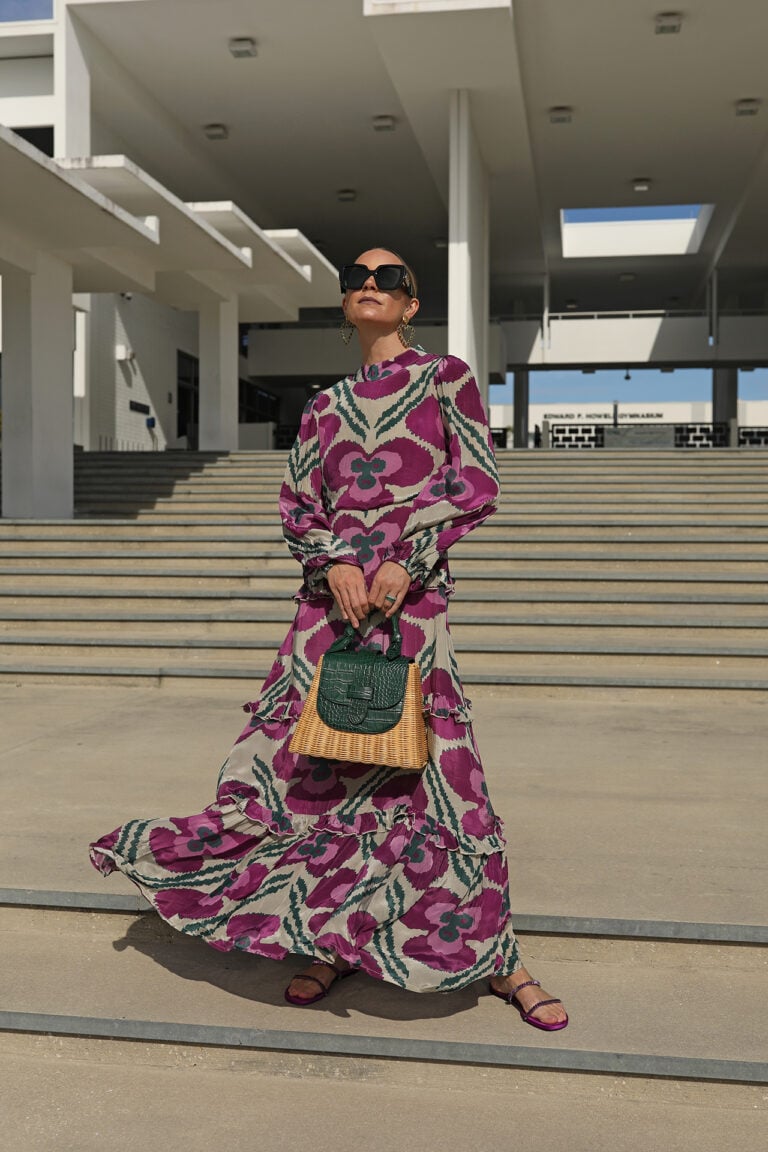 Dress: Oliphant // Earrings: Sylvia Toledano (shop the matching necklace here) // Sunglasses: Gucci // Bag: Pamela Munson