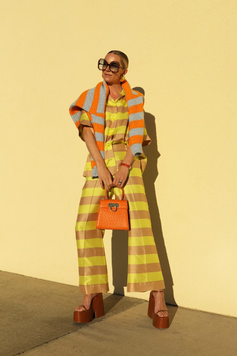 Top: Zimmermann // Bottom: Zimmermann // Shoes: Larroude // Bag: Ferragamo // Earrings: Sordo // Sunglasses: Linda Farrow (sold out) // Sweater: Mango (old)