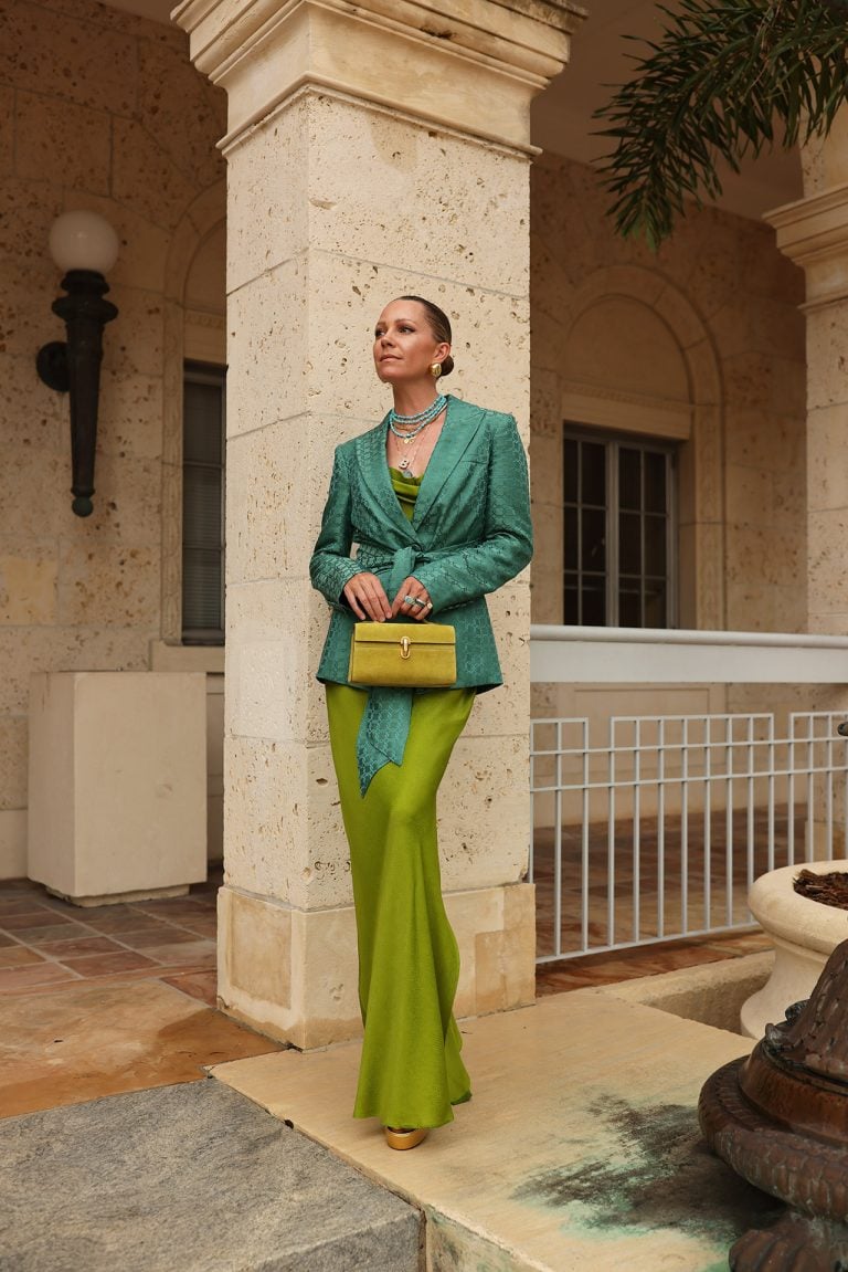 Jacket: Veronica Beard // Dress: Mango // Necklace: BaubleBar // Bag: Savette (would also look chic with this under $100 gold bag or this tassel bag)