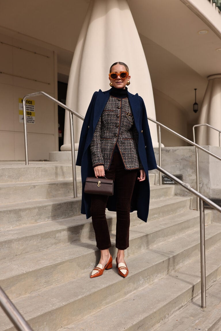 Blazer: Veronica Beard // Pants: Tuckernuck // Shoes: Franco Sarto // Coat: Smythe // Sunglasses: Amazon // Sweater: Vineyard Vines // Bag: Savette